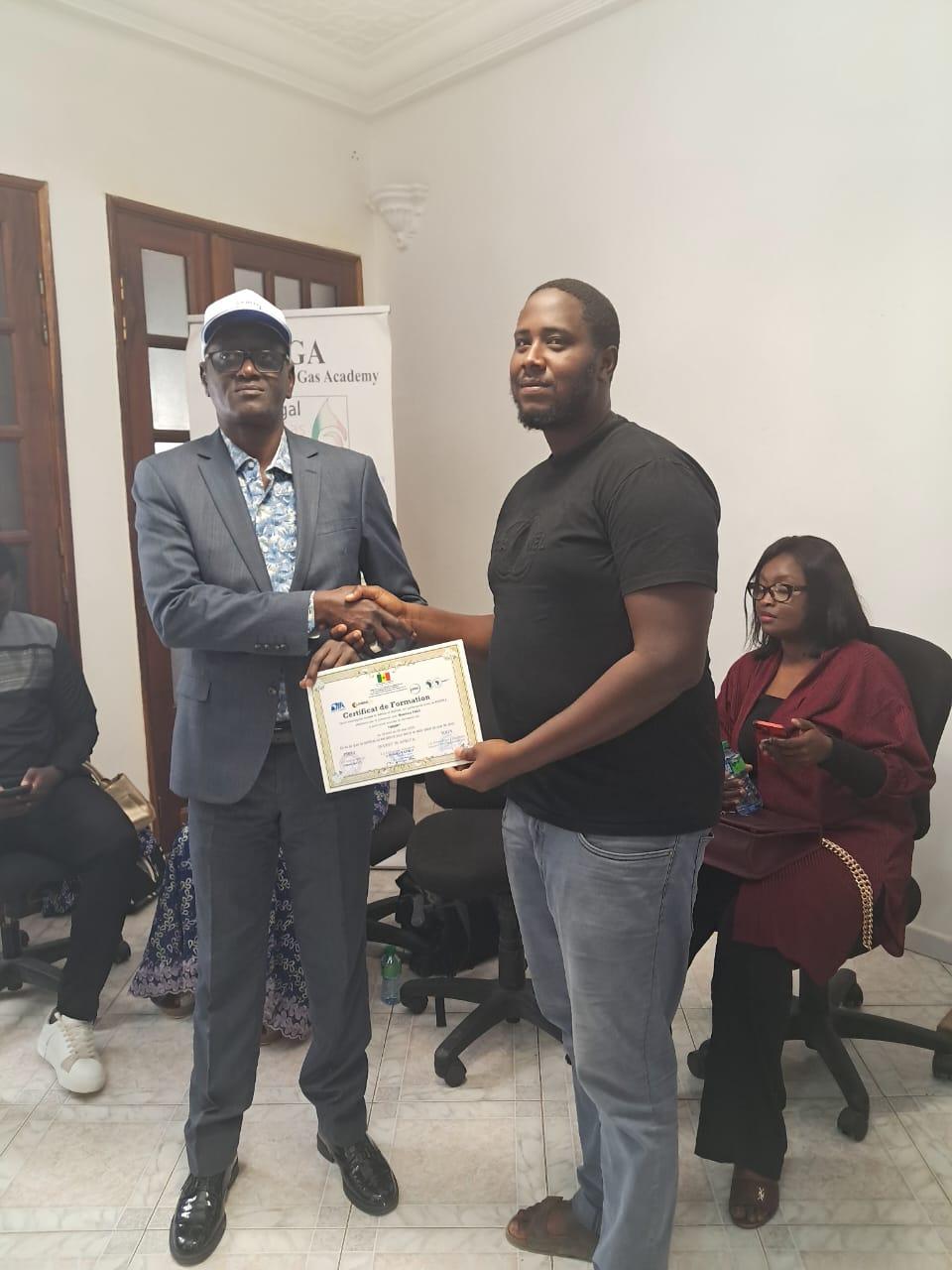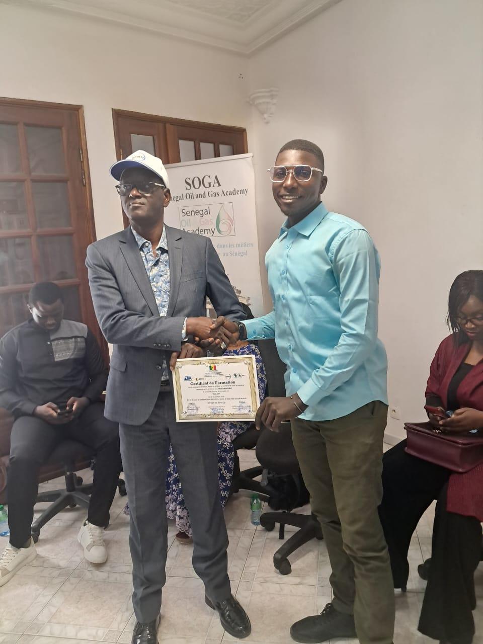 Leur emboitant le pas, le Chef de Projet Monsieur Sékou Badji, a qualifié de gagnant- gagnant le partenariat lié avec ces structures et s’est réjoui des performances enregistrées depuis la signature de la convention avec Invest in Africa, chargé de coordonner l’acquisition et la valorisation des compétences de plus de 500 jeunes dans les métiers porteurs de l’Oil & gaz. Il a enfin félicité les jeunes récipiendaires et a terminé son propos par quelques conseils et recommandations envers ces derniers pour une insertion professionnelle réussie dans le secteur.