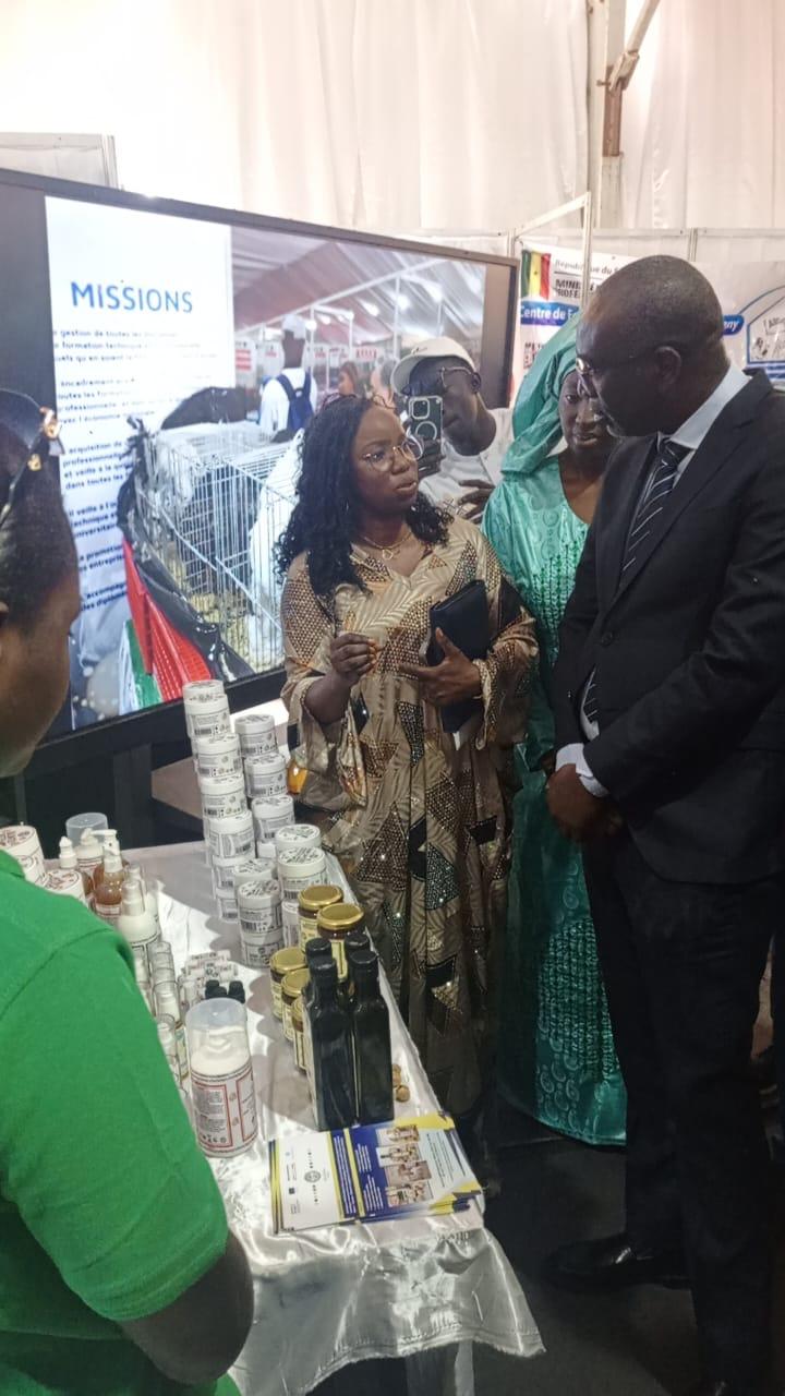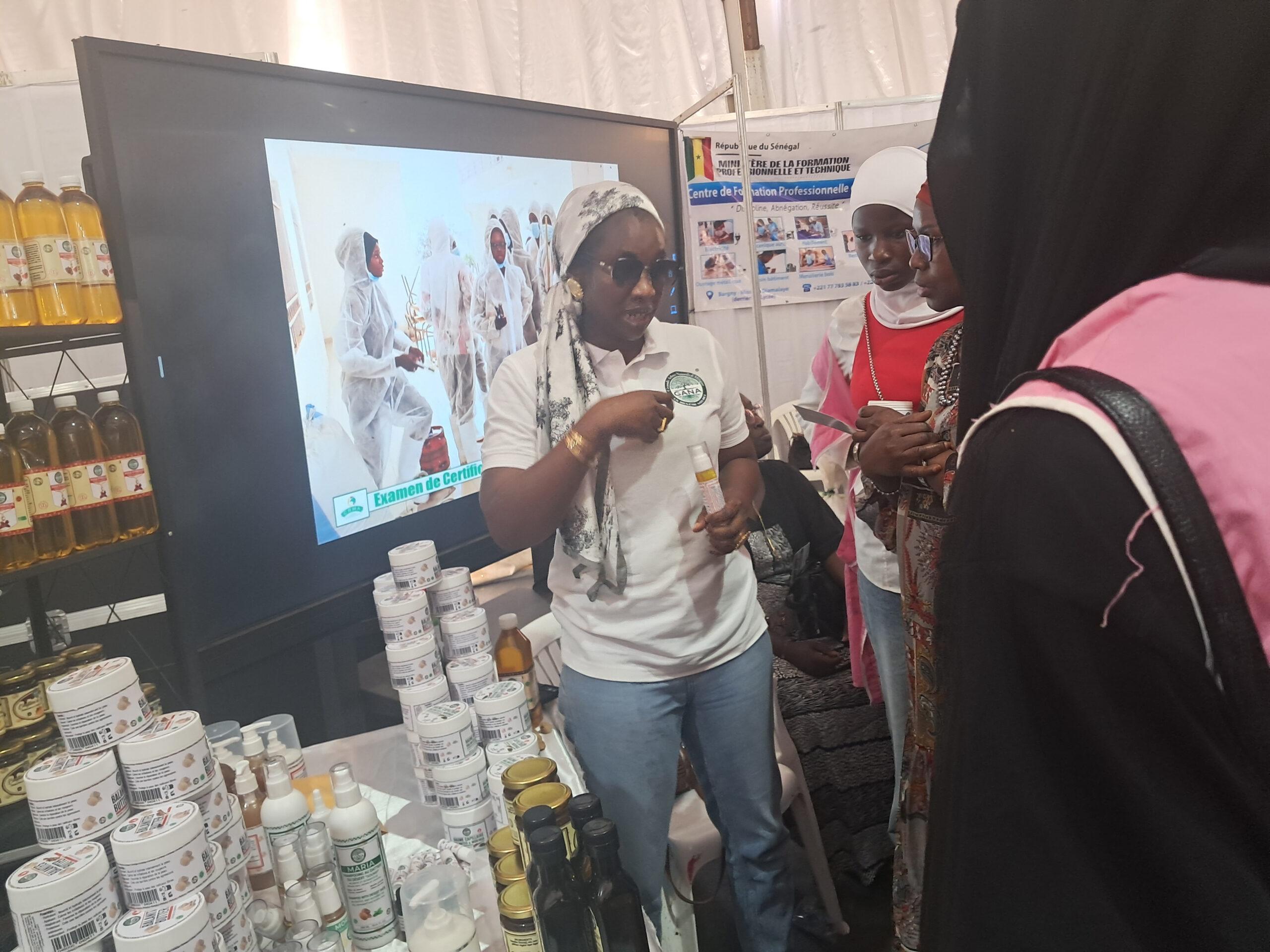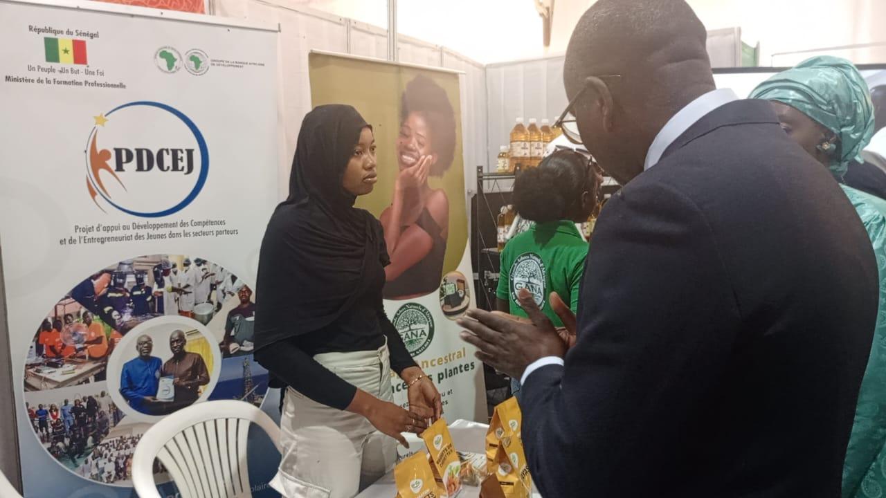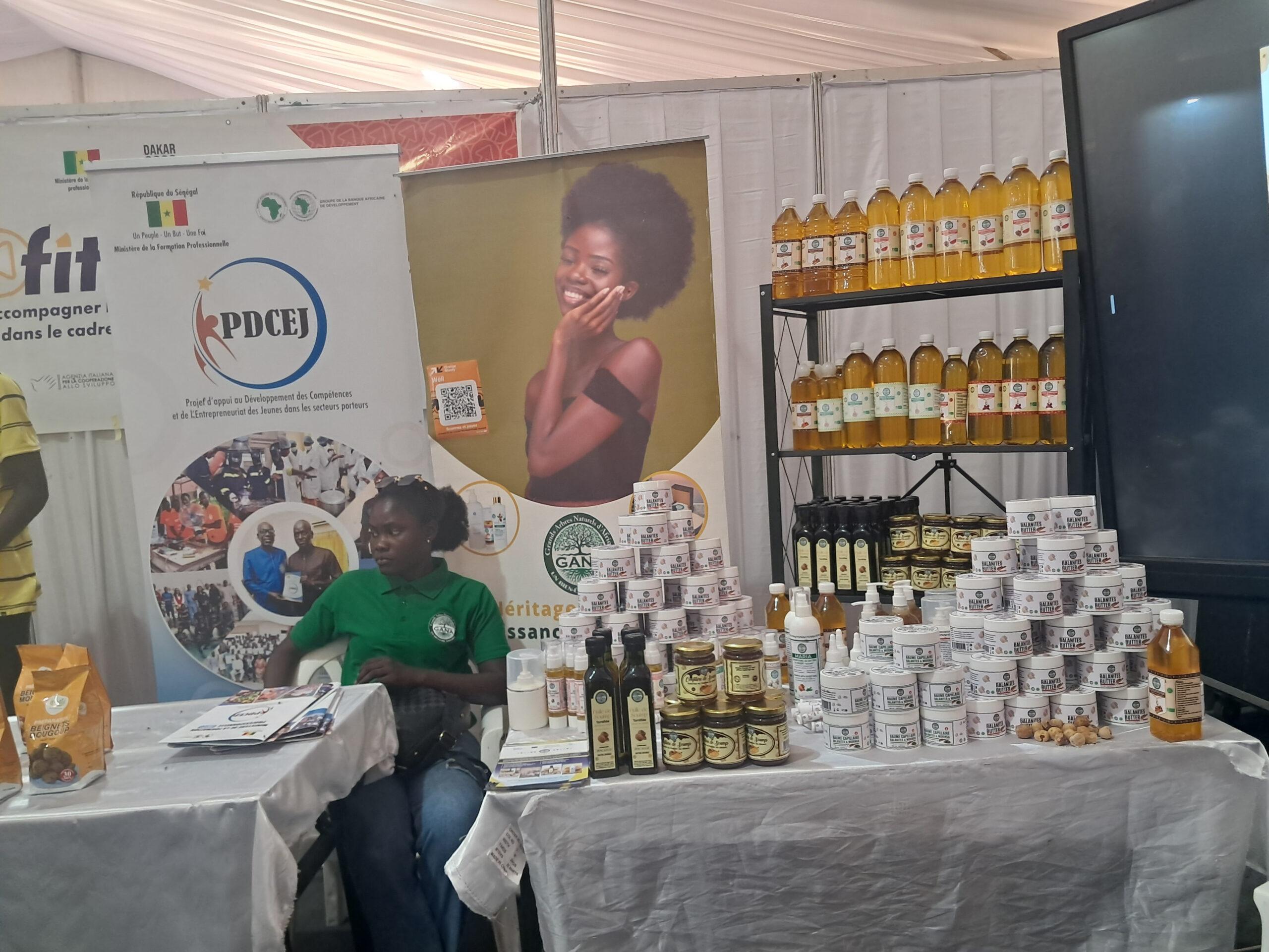 Cette dernière qui s’est tenue le lundi 19 mai 2025, sous la présidence du Ministre Amadou Moustapha Ndieck Sarré, a permis de présenter les filières agricoles aux jeunes participants, dans l’objectif de renforcer l’attractivité des formations et de constituer un capital humain qualifié pour un secteur primaire compétitif. En effet, en tant que plate-forme essentielle pour la promotion de l’agriculture et des ressources animales, la FIARA constitue également une opportunité pour mettre en relief en plus de l’offre de formation existante, les innovations et réalisations de la FPT dans le secteur primaire. C’est dans cette perspective que le PDCEJ, a tenu à montrer ses résultats à travers une exposition des productions de ses bénéficiaires accompagnés en agrobusiness et en agroalimentaire et qui sont pour la plupart devenus des entrepreneurs à la conquête du marché local et sous régional. C’est le cas de l’entreprise GANA (Grands Arbres Naturels d’Afrique) fondée par Mme Badiane Penda Diagne, formée et accompagnée dans le cadre de la mise en œuvre de la convention signée entre le PDCEJ et l’ITA. Ainsi, après son incubation, elle a misé sur l’innovation en mettant sur pied cette marque spécialisée dans l’extraction d’huiles végétales locales, telles que le dattier du désert (Soump), le moringa, le Baobab, le sésame l’hibiscus la pastèque, pour des applications alimentaires et cosmétiques.