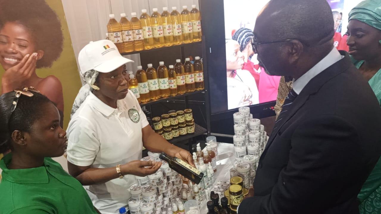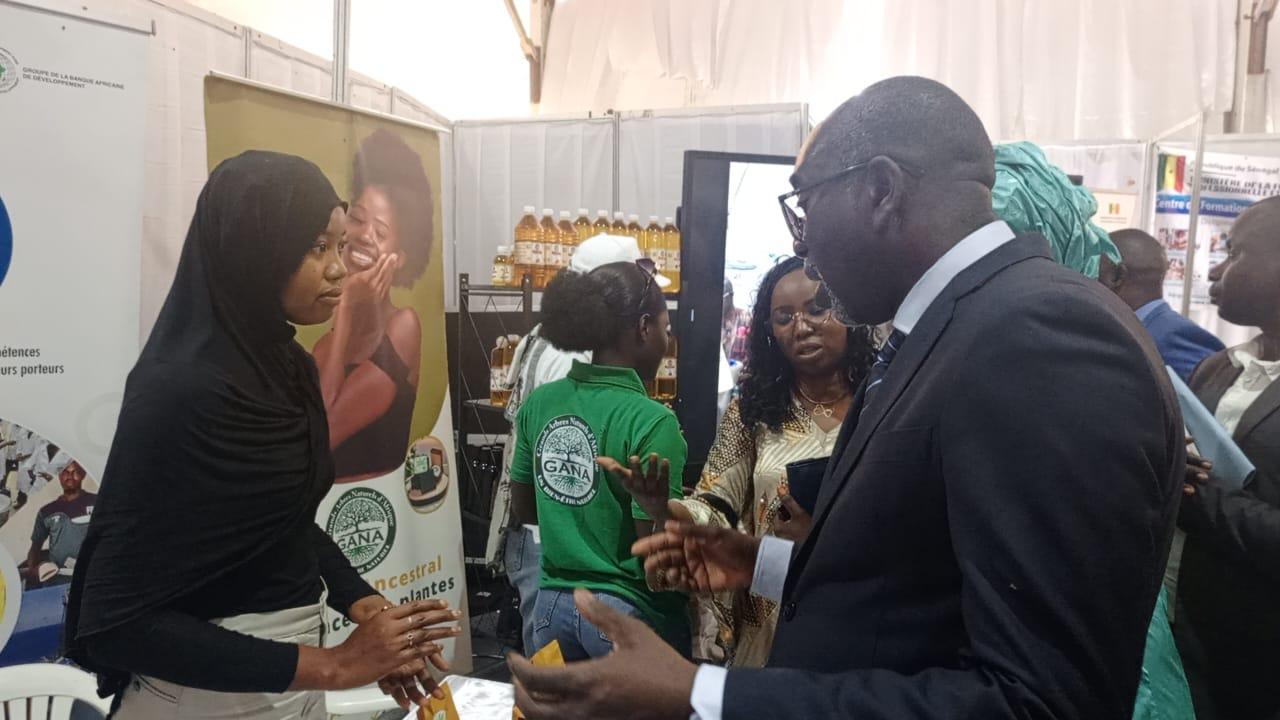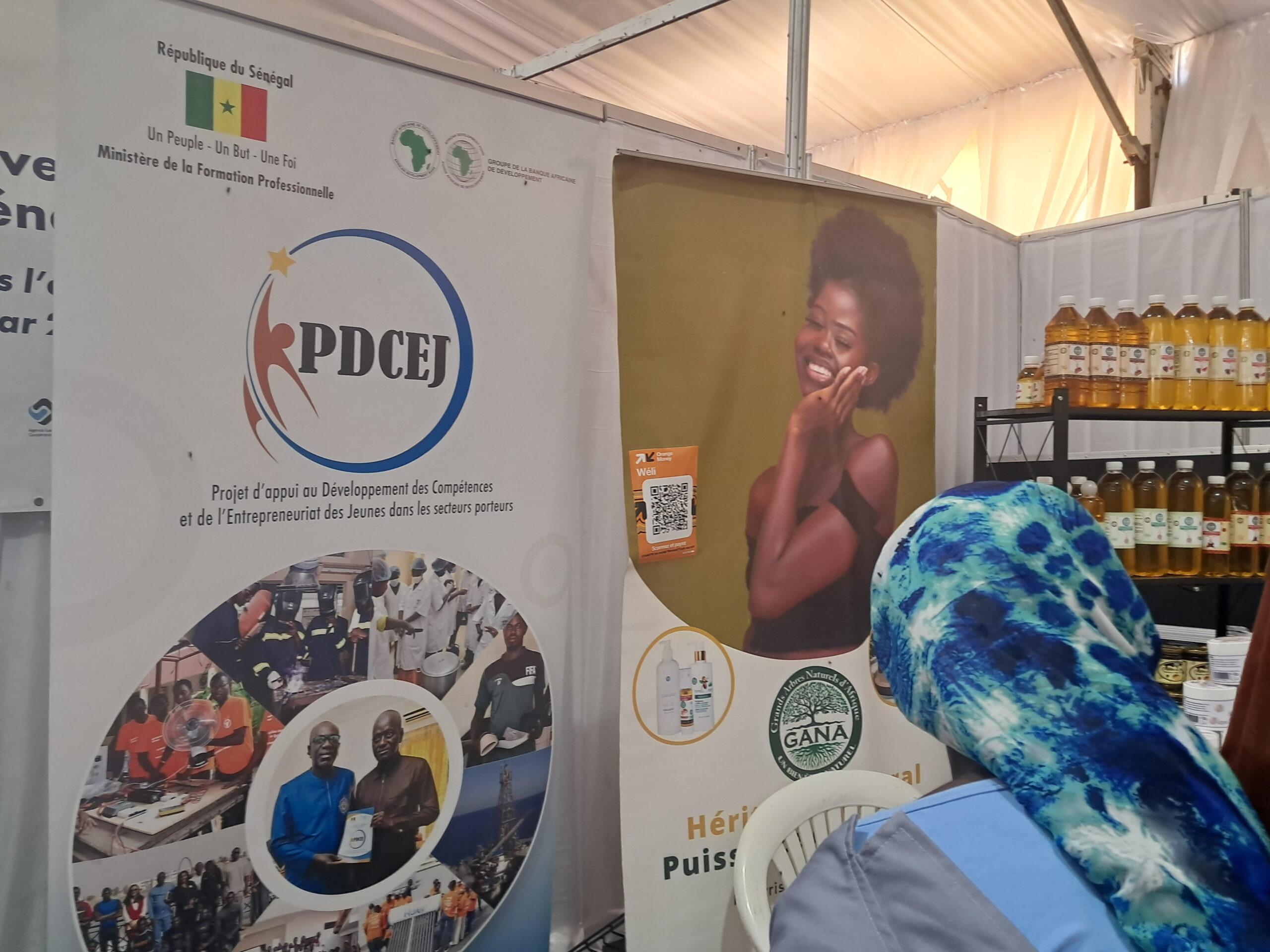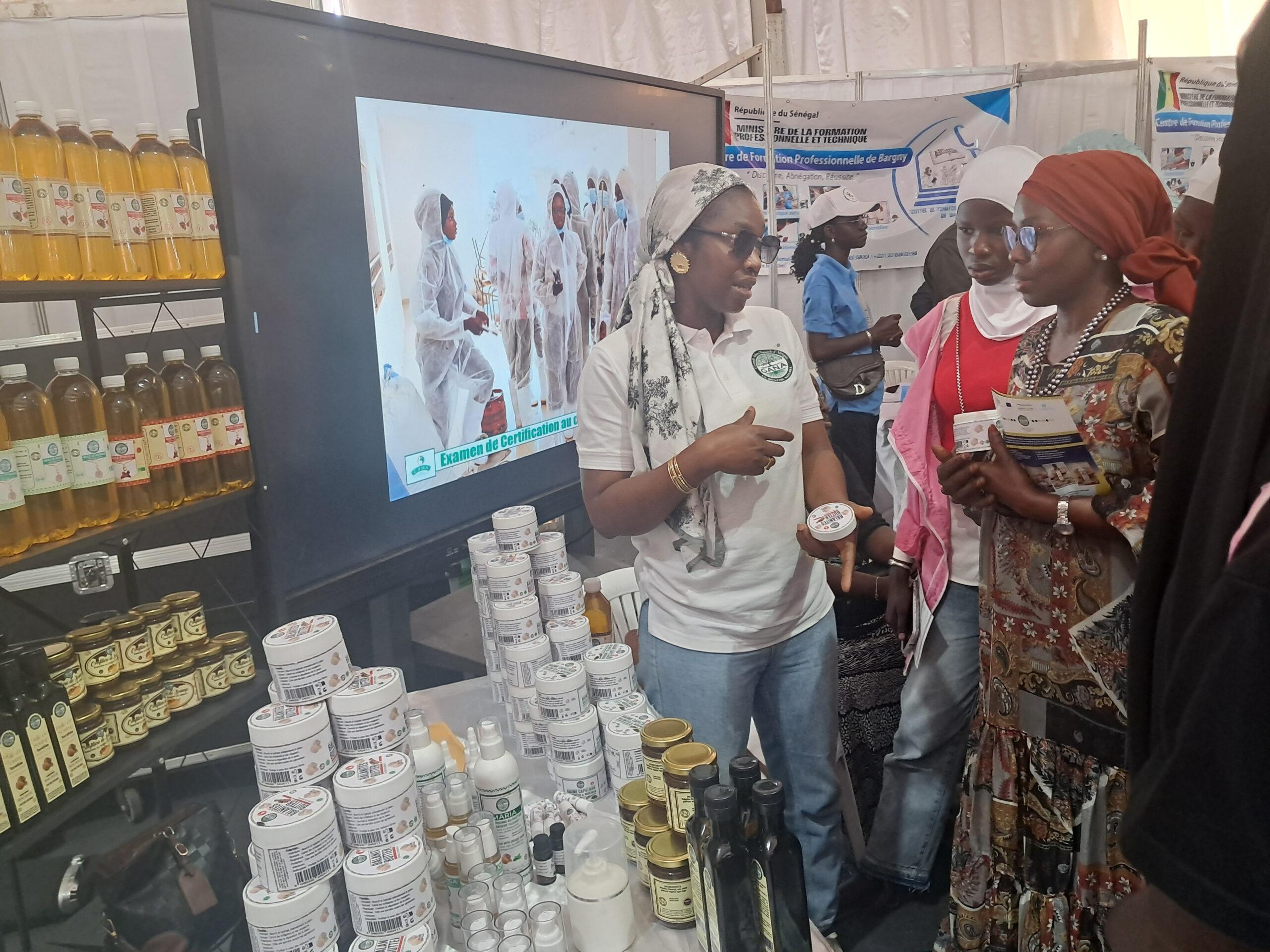 Cette dernière qui s’est tenue le lundi 19 mai 2025, sous la présidence du Ministre Amadou Moustapha Ndieck Sarré, a permis de présenter les filières agricoles aux jeunes participants, dans l’objectif de renforcer l’attractivité des formations et de constituer un capital humain qualifié pour un secteur primaire compétitif. En effet, en tant que plate-forme essentielle pour la promotion de l’agriculture et des ressources animales, la FIARA constitue également une opportunité pour mettre en relief en plus de l’offre de formation existante, les innovations et réalisations de la FPT dans le secteur primaire. C’est dans cette perspective que le PDCEJ, a tenu à montrer ses résultats à travers une exposition des productions de ses bénéficiaires accompagnés en agrobusiness et en agroalimentaire et qui sont pour la plupart devenus des entrepreneurs à la conquête du marché local et sous régional. C’est le cas de l’entreprise GANA (Grands Arbres Naturels d’Afrique) fondée par Mme Badiane Penda Diagne, formée et accompagnée dans le cadre de la mise en œuvre de la convention signée entre le PDCEJ et l’ITA. Ainsi, après son incubation, elle a misé sur l’innovation en mettant sur pied cette marque spécialisée dans l’extraction d’huiles végétales locales, telles que le dattier du désert (Soump), le moringa, le Baobab, le sésame l’hibiscus la pastèque, pour des applications alimentaires et cosmétiques.