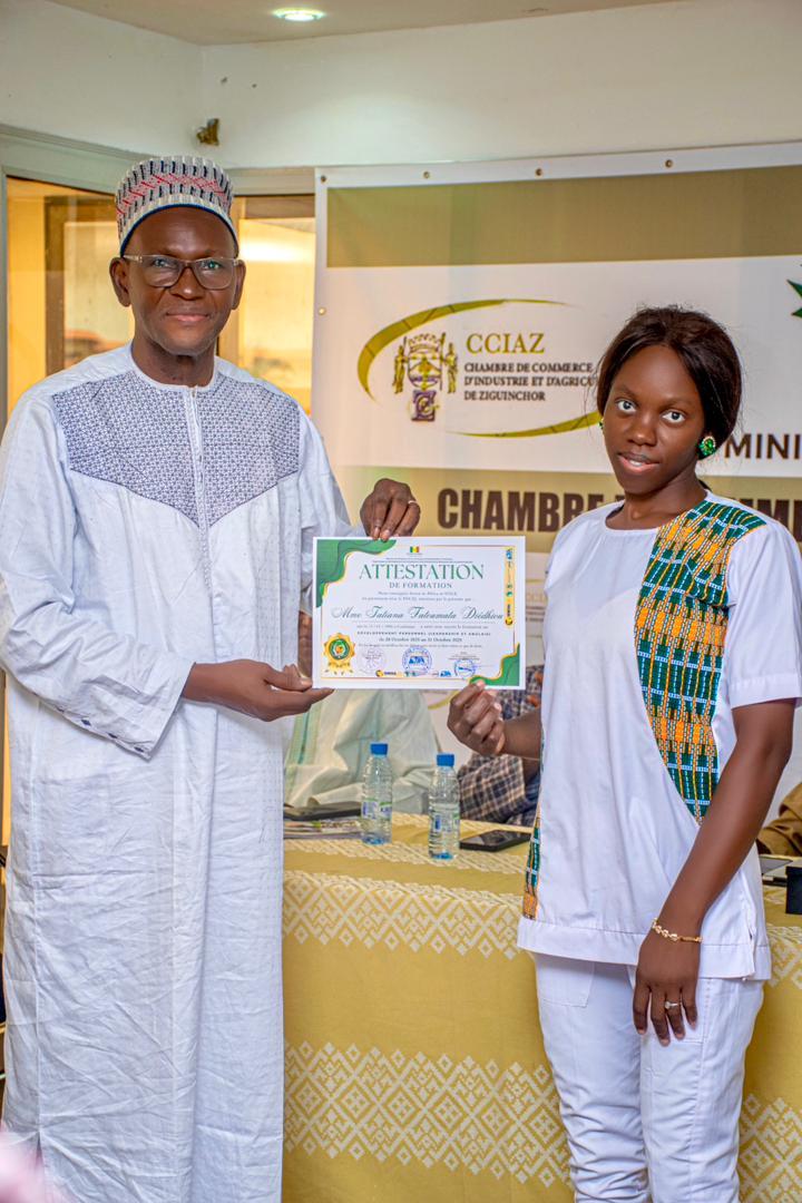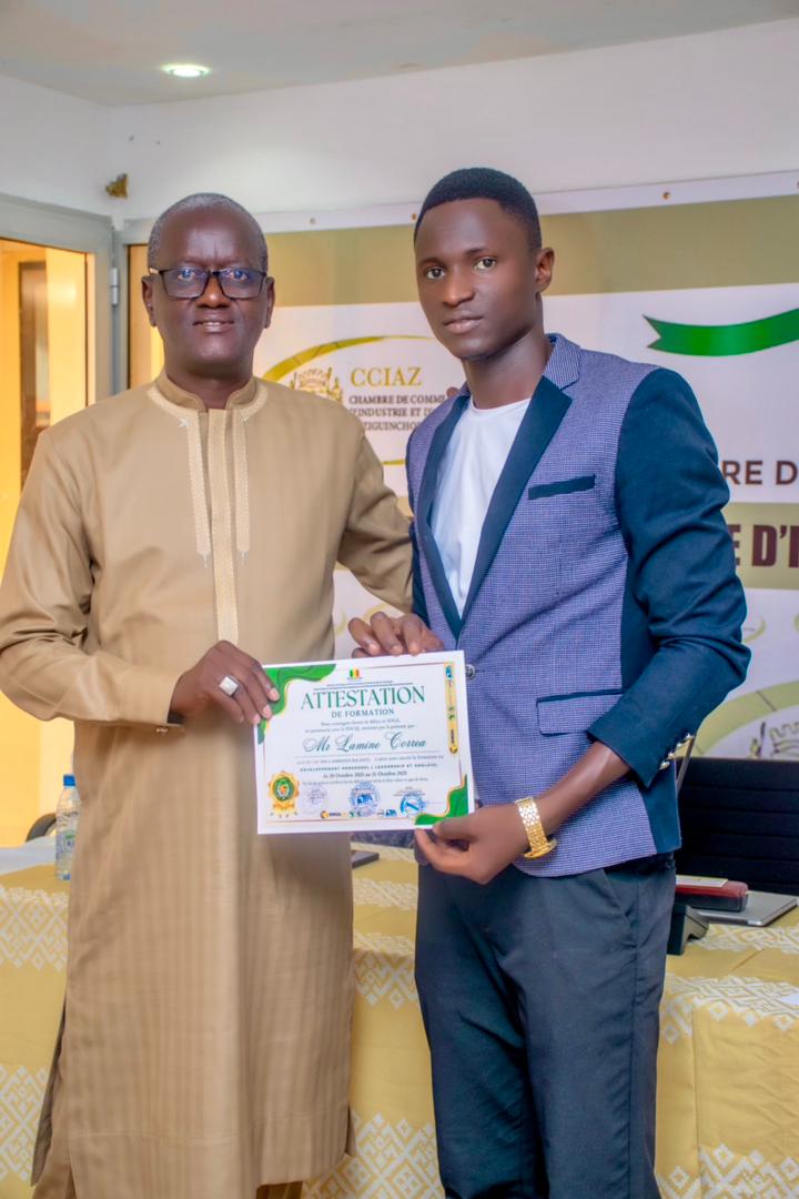 Le jeudi 31 octobre 2025, le Projet d’appui au Développement des Compétences et de l’Entrepreneuriat des Jeunes dans les secteurs porteurs (PDCEJ) en collaboration avec Invest in Africa (IIA), a organisé deux cérémonies de remise d’attestations à la Chambre de Commerce de Ziguinchor et au Lycée Technique André Peytavin de Saint-Louis en présence, respectivement, du Chef de projet monsieur Sékou BADJI et de l’Expert en Communication madame Aïda FALL. Les bénéficiaires, provenant des régions de Ziguinchor et de Saint-Louis, font partie des 500 jeunes déjà capacités dans les métiers du pétrole et du gaz conformément à la convention qui lie le PDCEJ à IIA.